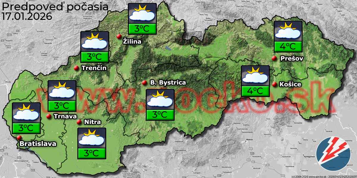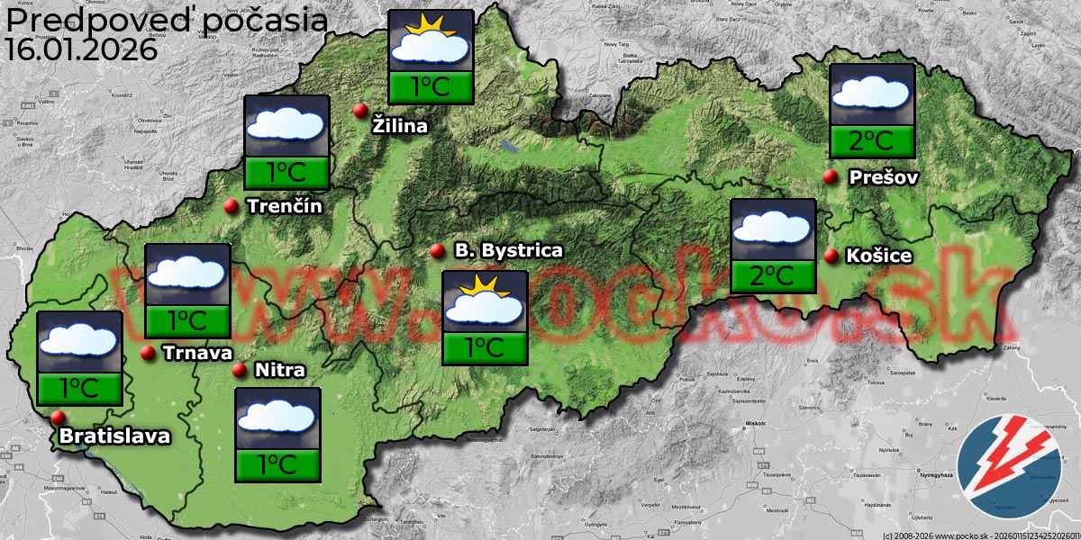 Na strednom Slovensku pozajtra očakávame prevažne oblačno. Najnižšie ranné teploty -1 až -4 °C a maximálne denné teploty -1 až 2 °C.