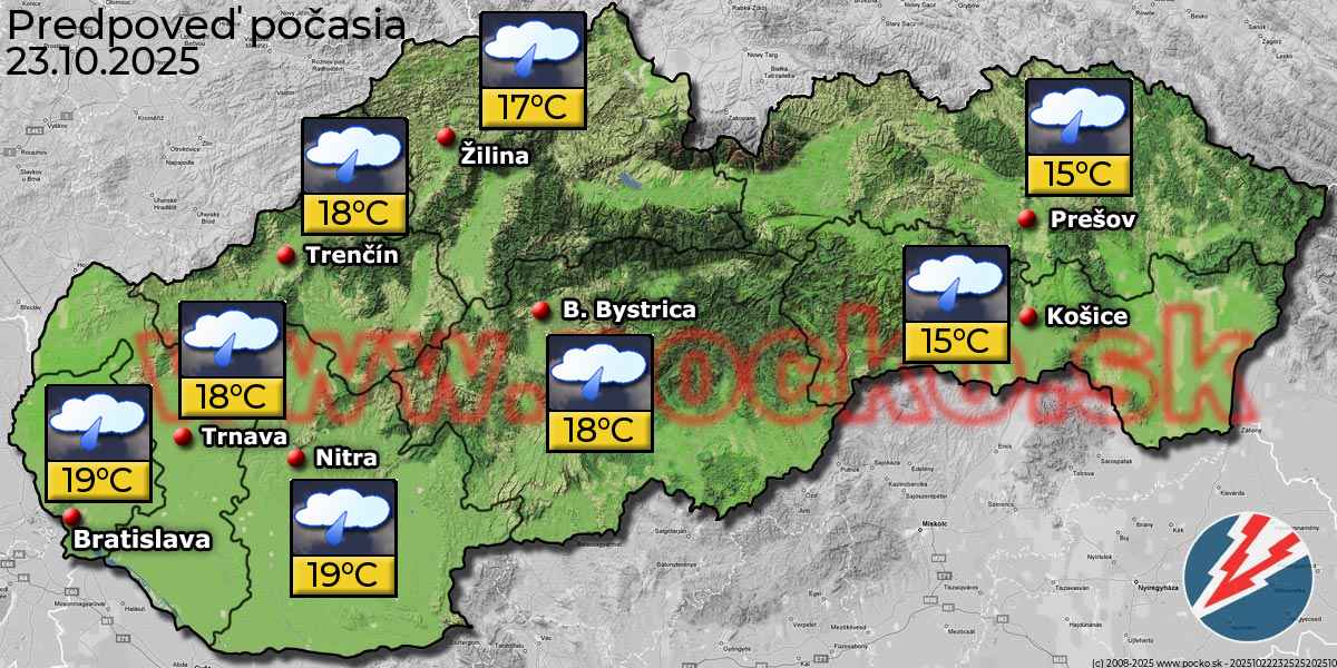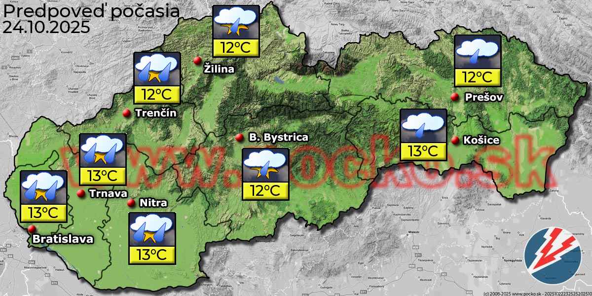 Na západnom Slovensku pozajtra očakávame oblačno a prehánky. Najnižšie ranné teploty 9 až 6 °C a najvyššie denné teploty 10 až 13 °C.